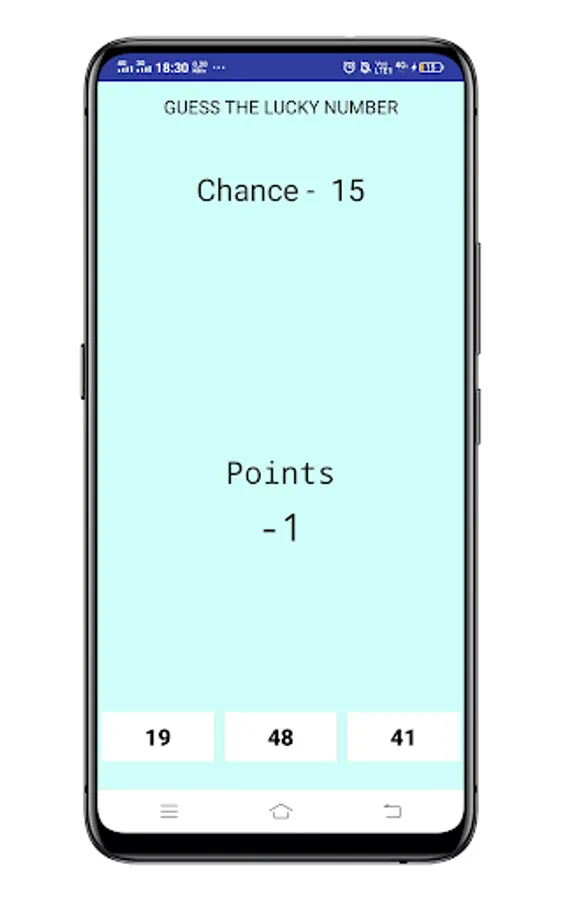 A simple Game where you have to select the lucky number and on each correct choice you get a point and for every wrong choice your points gets deducted by -1.
