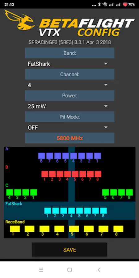 This app allows configuration of TBS Unify Pro or TrampHV video channels via your Beta Flight Flight controllers.