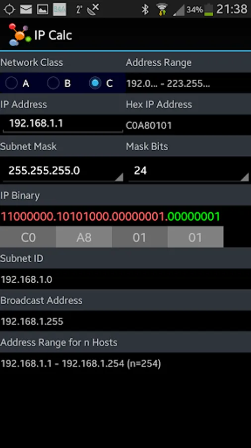 You can calculate subnet, netmask, broadcast, CIDR, address-range.