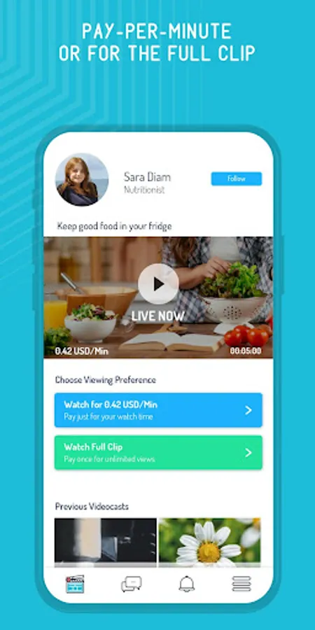 - Pay per minute for watching your Expert’s VideoCast or pay once for their full clip