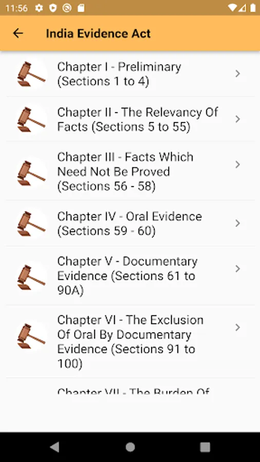 यह ऐप भारतीय न्याय प्रणाली के एक मौलिक पिलर के रूप में काम करता है, भारतीय अदालतों में साक्षय के प्रमाणित होने और व्याख्या के नियमों और विधियों की जटिल जाल को समझने के लिए।