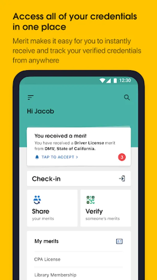 Use Merit to scan your credentials at events, get verified, take your digital credentials with you wherever you go, without any need to worry about losing your ID cards and certificates.