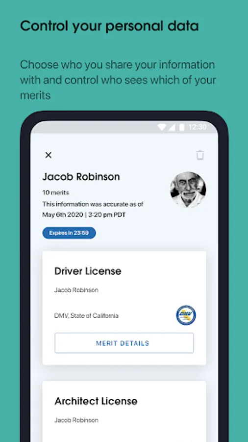*Protect Privacy -- Control access to your private data by determining which organizations and apps can access your merits.