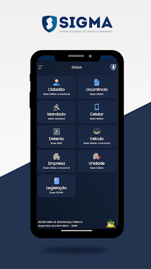 Application developed for Public Security agents, as part of the SIGMA project (Integrated Management System of Maranhão). In it, users can consult citizens, units, occurrences, warrants, vehicles, among others.