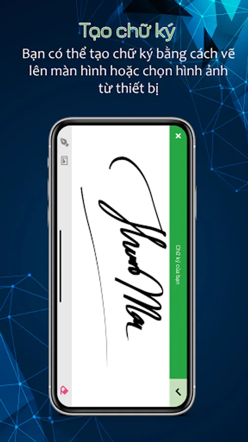 Create signatures by drawing on the screen or customize with stock images and protect them as digital signatures.
