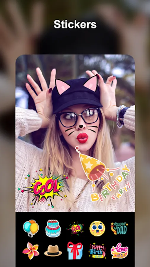 Photo Collage Editor & stickers photo editor has multiple categories of stickers available. Make your Photo Collage App using hundreds snapshot stickers, motion stickers camera, funny stickers. You can download unlimited stickers online for free with different category like love, new year, christmas, trends, festival, funny face, emoji and many more. Further you can also add text on picture & write on photos as you wish by all customizations like color, font size, font styles.