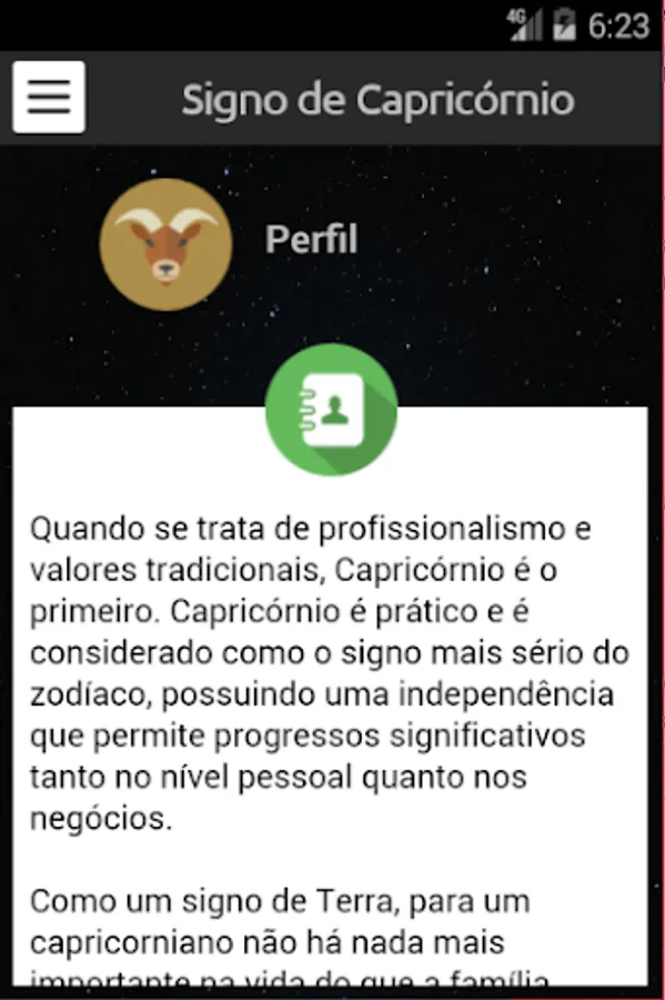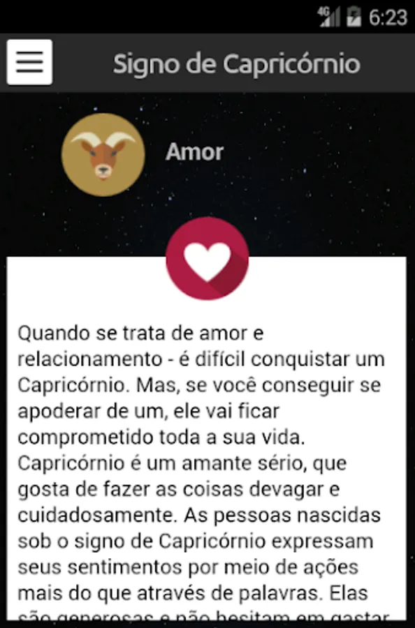 Learn all about the zodiac sign, the app brings a lot of information for you know very well people of Capricorn. It includes information such as: