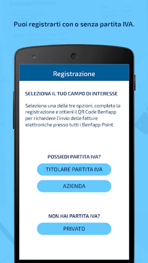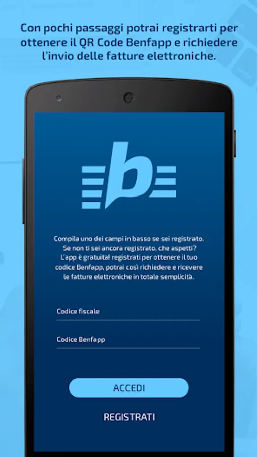 The app allows you to register with the Benfapp platform. Being part of the Benfapp community will allow you to receive invoices quickly, easily and without having to give your data every time you want to receive an invoice.