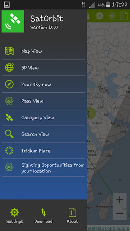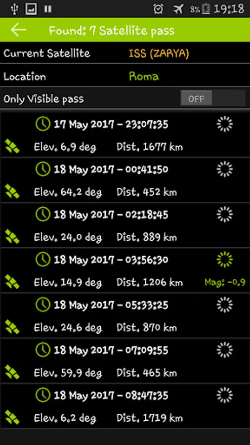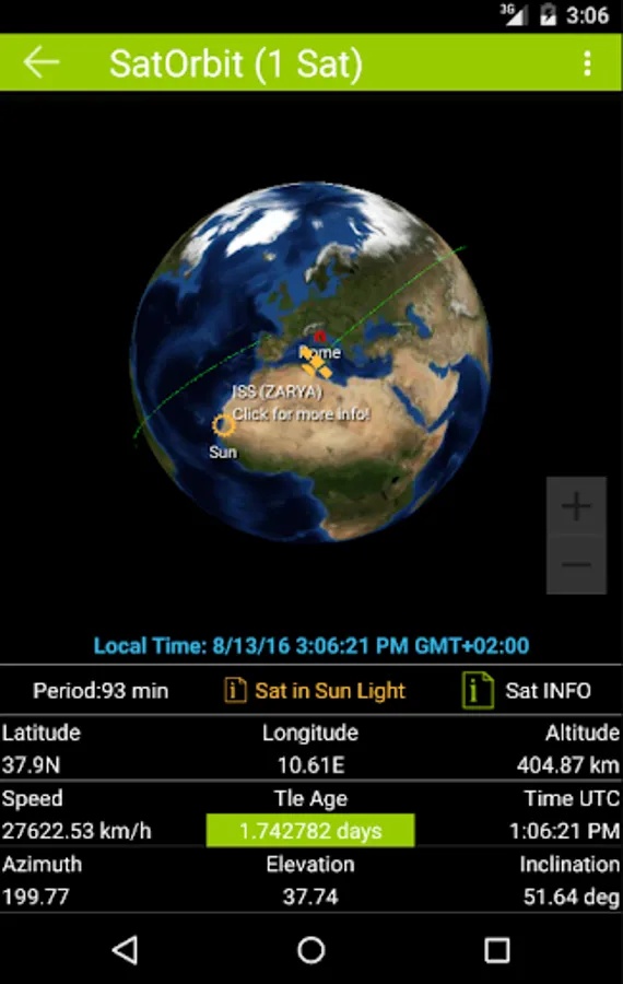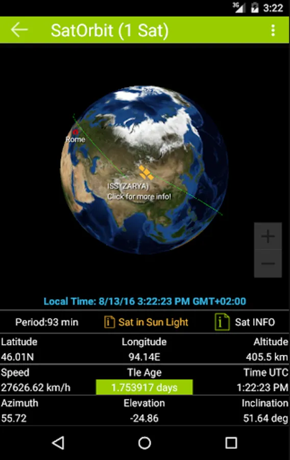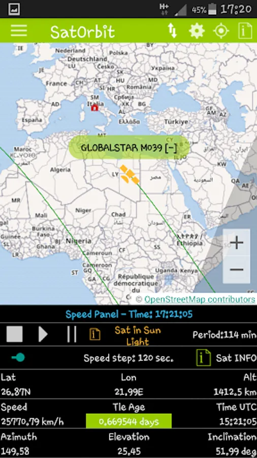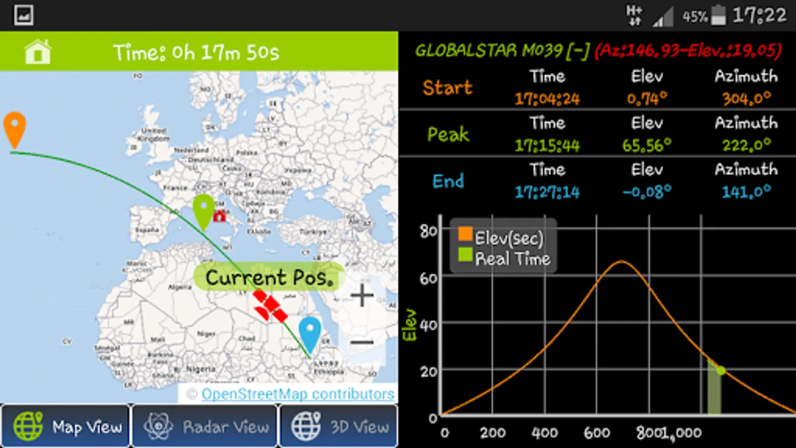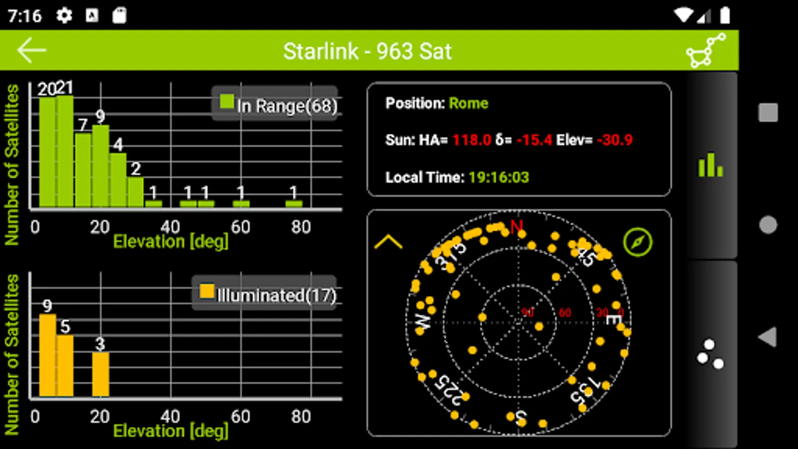 - Display of Satellite data (azimuth, elevation, latitude, longitude, altitude, speed....) also offline