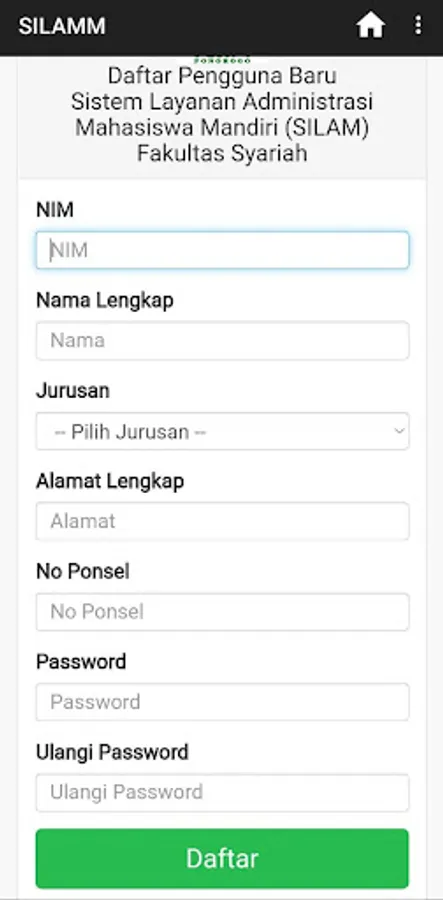 The SILAMM application is a correspondence application at the Sharia Faculty of IAIN Ponorogo