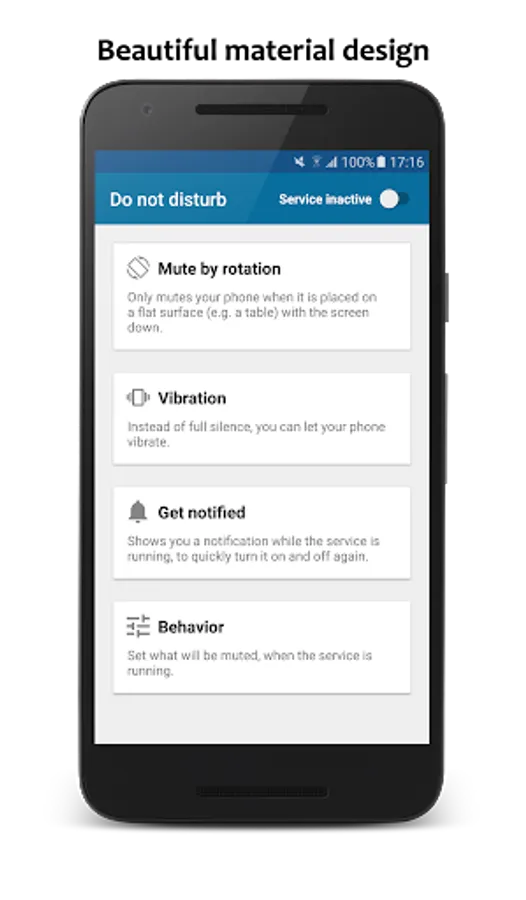 The core concept of this app is, that you can place your phone or tablet face down on a flat surface (e.g. table). The app will notice this movement and automatically mute itself.