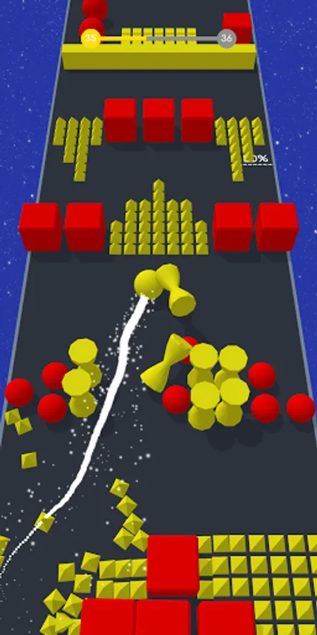 Beware of the switch color holes, enemy colors and various obstacles. Moving and rotating blocks, patrols, unexpected block forces. Face the challenge and rush ball color! Crush the blocks, bump the ball, bounce blocks, rocket ball color the stake ball 3D.