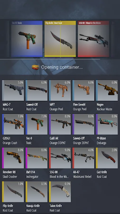 Open cases and unbox the most valuable weapons and knives in this brand new addictive app.