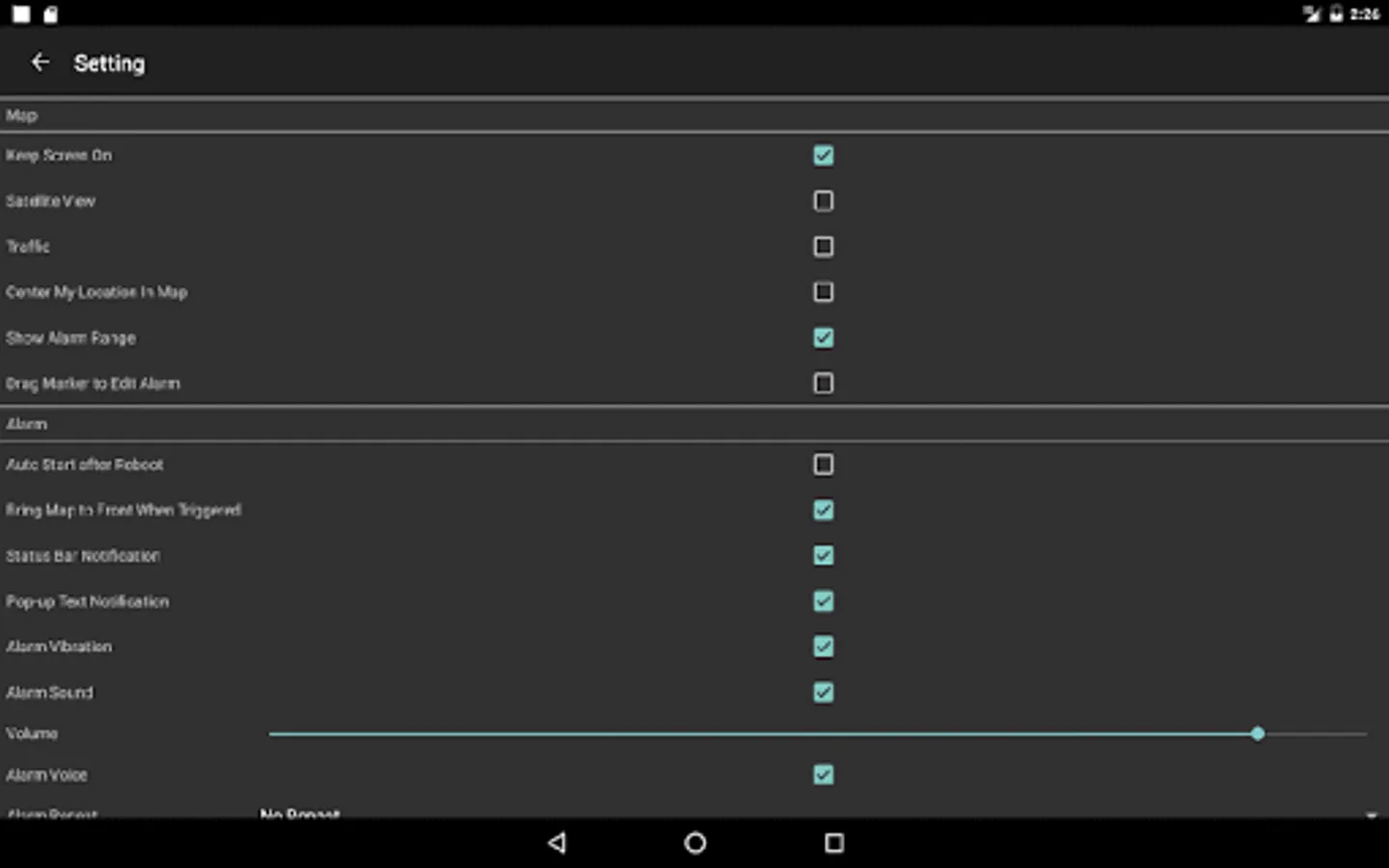 Set some destinations, and this alarm will remind you when you approach them. You can set notification in status bar, vibrate your phone, and choose an alarm sound you like, or even let voice remind you. Then, take the road!