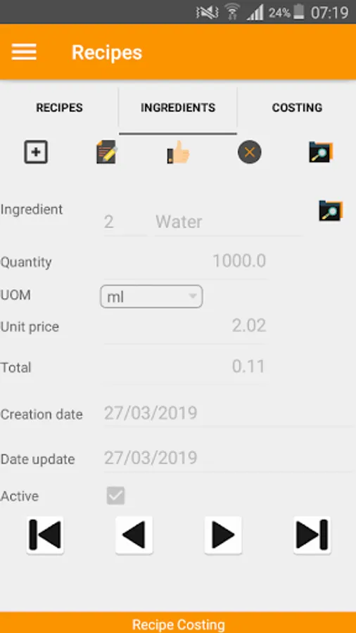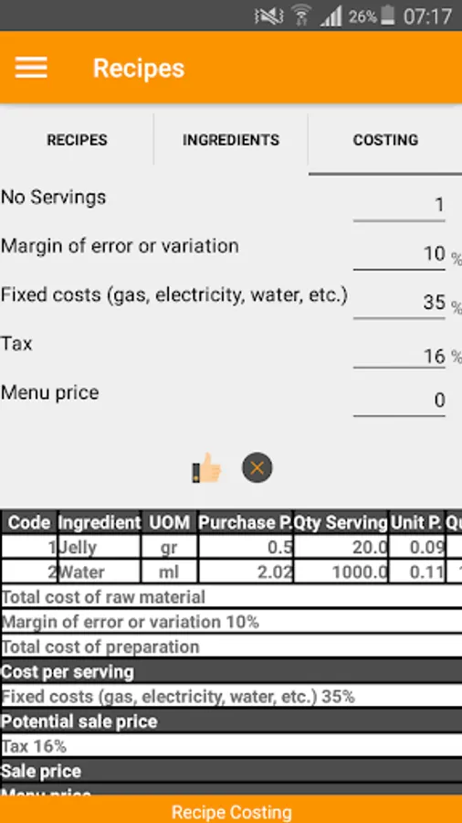 Recipe Costing Screenshots