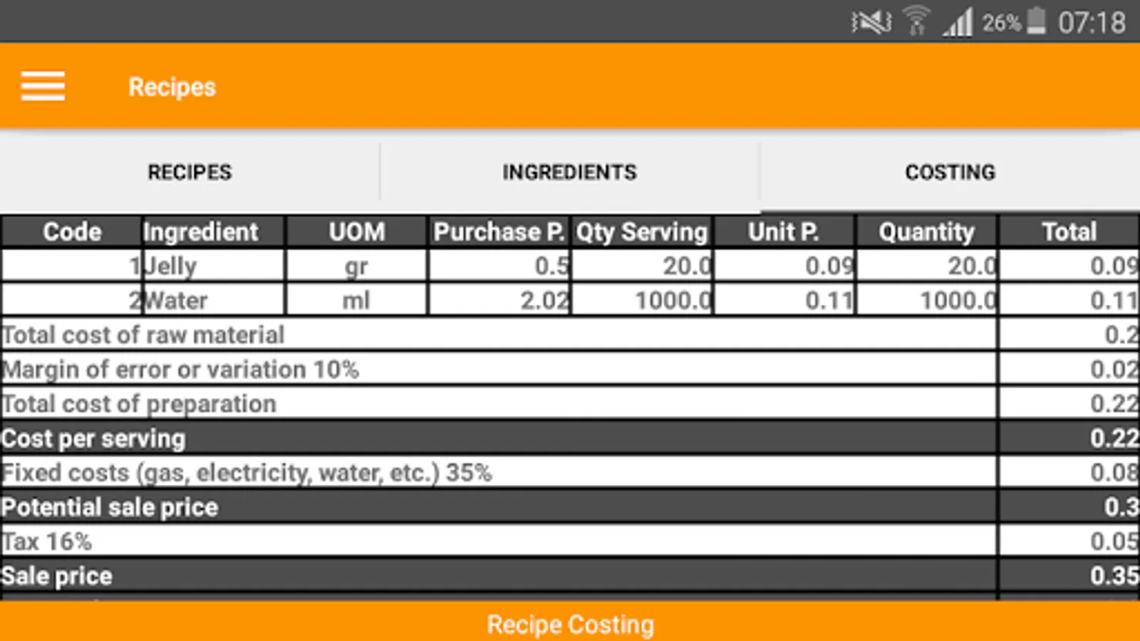 Recipe Costing