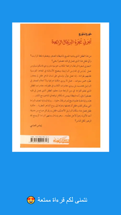A work that does not only tell a fairy tale or the dreams of youngsters in Brazil, but also narrates the adventures of the writer in his childhood, the adventures of the child who learned to read at the age of four without a teacher, the child who carries in his heart a bird and in his head a demon whispers to him ideas that put him in trouble with adults. This is a sweet novel The sweetness of the sap of a sweet orange is a human novel that describes the innocence that a child's heart can hold, and introduces us to the poet's innate spirit. The tale of a child who carries the blood of the indigenous people of Brazil, a child who steals every morning from the garden of a rich man a flower for his teacher as he asks with the utmost innocence: Did God not give flowers to all People?".