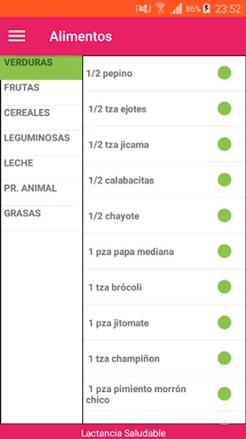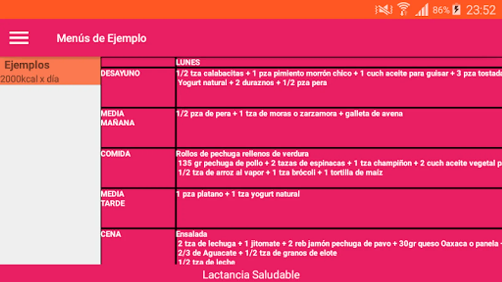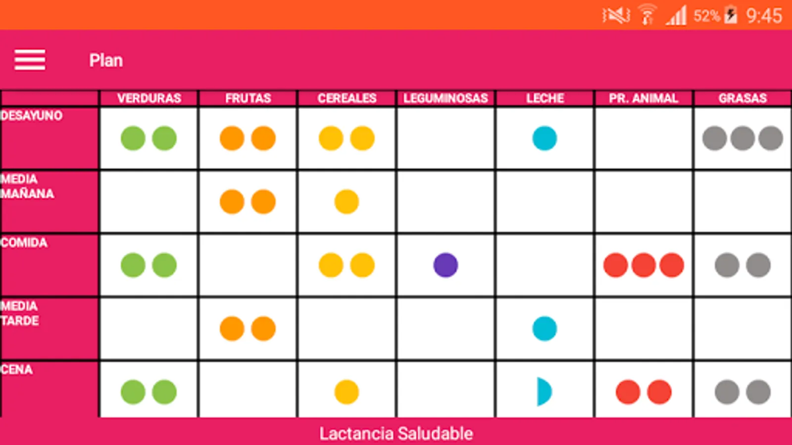 Healthy breastfeeding allows you to create your own daily menus through a points plan.
