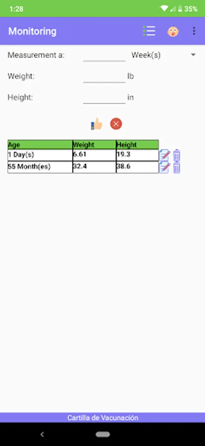* Storage of somatometric data of weight, height and the calculation of the body mass index.