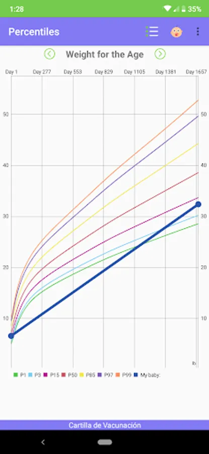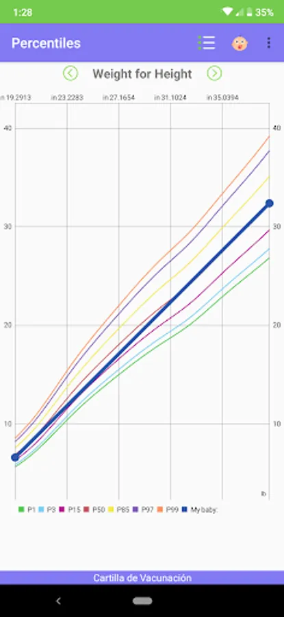 * Graphs of percentiles of weight for age, height for age and weight for height, with data from the World Health Organization (WHO).