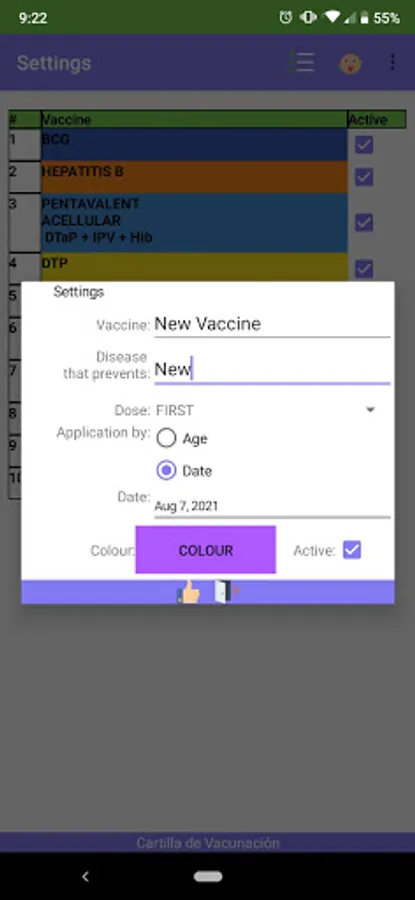 * Vaccine Registry, Configure the current vaccination scheme in your country.