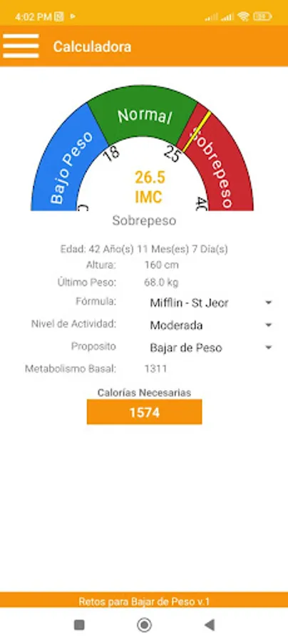 f) Daily calorie approximation calculator.