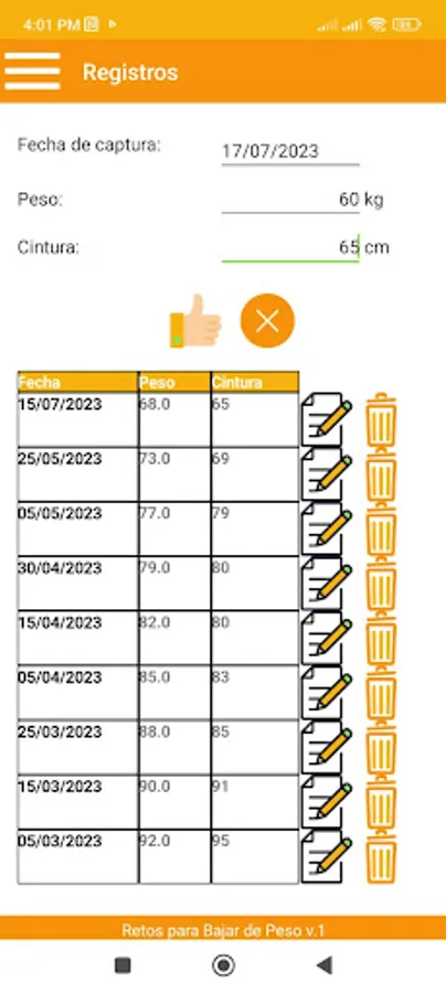 e) Visualize charts of weight and waist tracking.