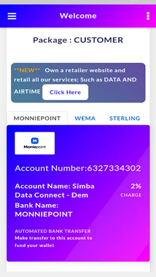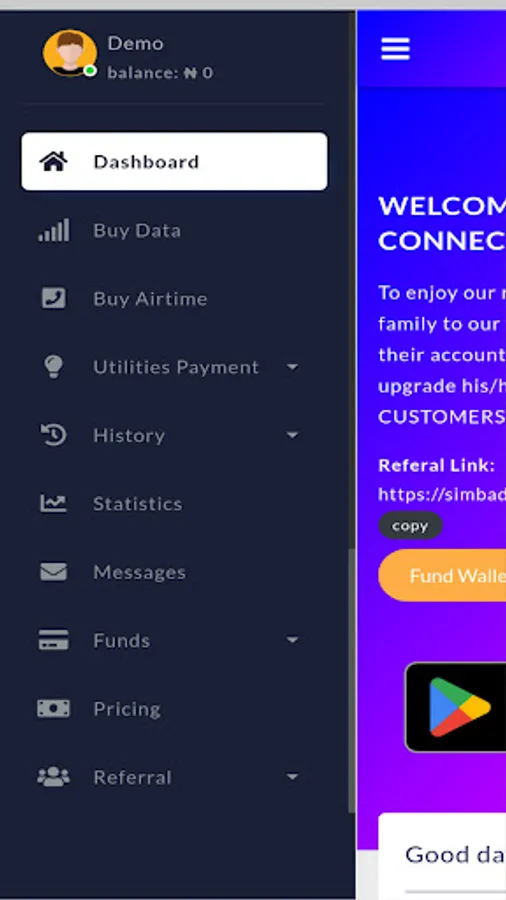 We offer instant recharge of Airtime,Databundle,CableTv, electricity bills payment,bulk SMS and many more.