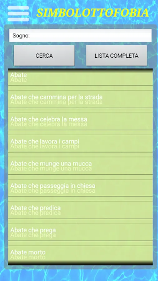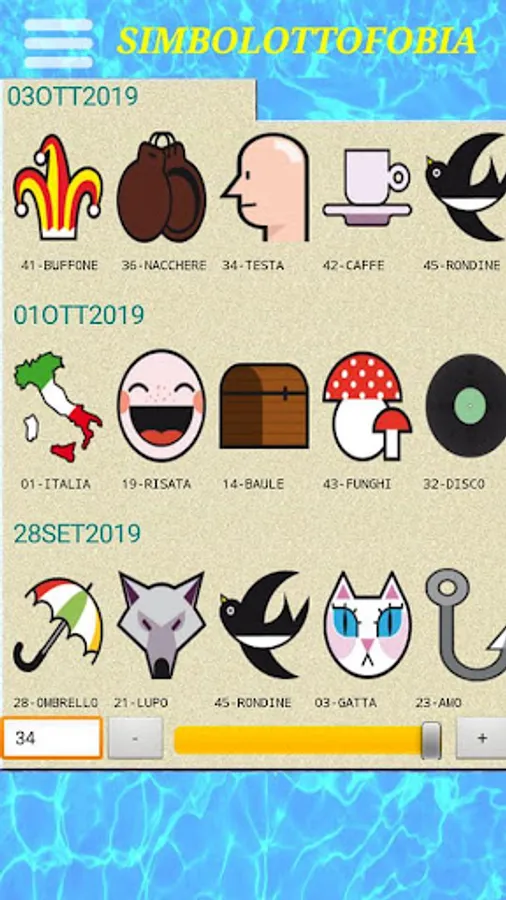 APP that manages the archive of the new Simbolotto contest linked to the three-weekly lottery draws. Also included is the electronic grimace archive with 4300 dreams and forecasts for the lot.