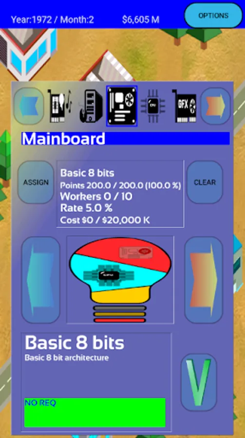 ● Compete with other virtual players by constantly developing your technology. Don't be beaten by any of the 3 competing companies, remember that the technology race is going on all the time.