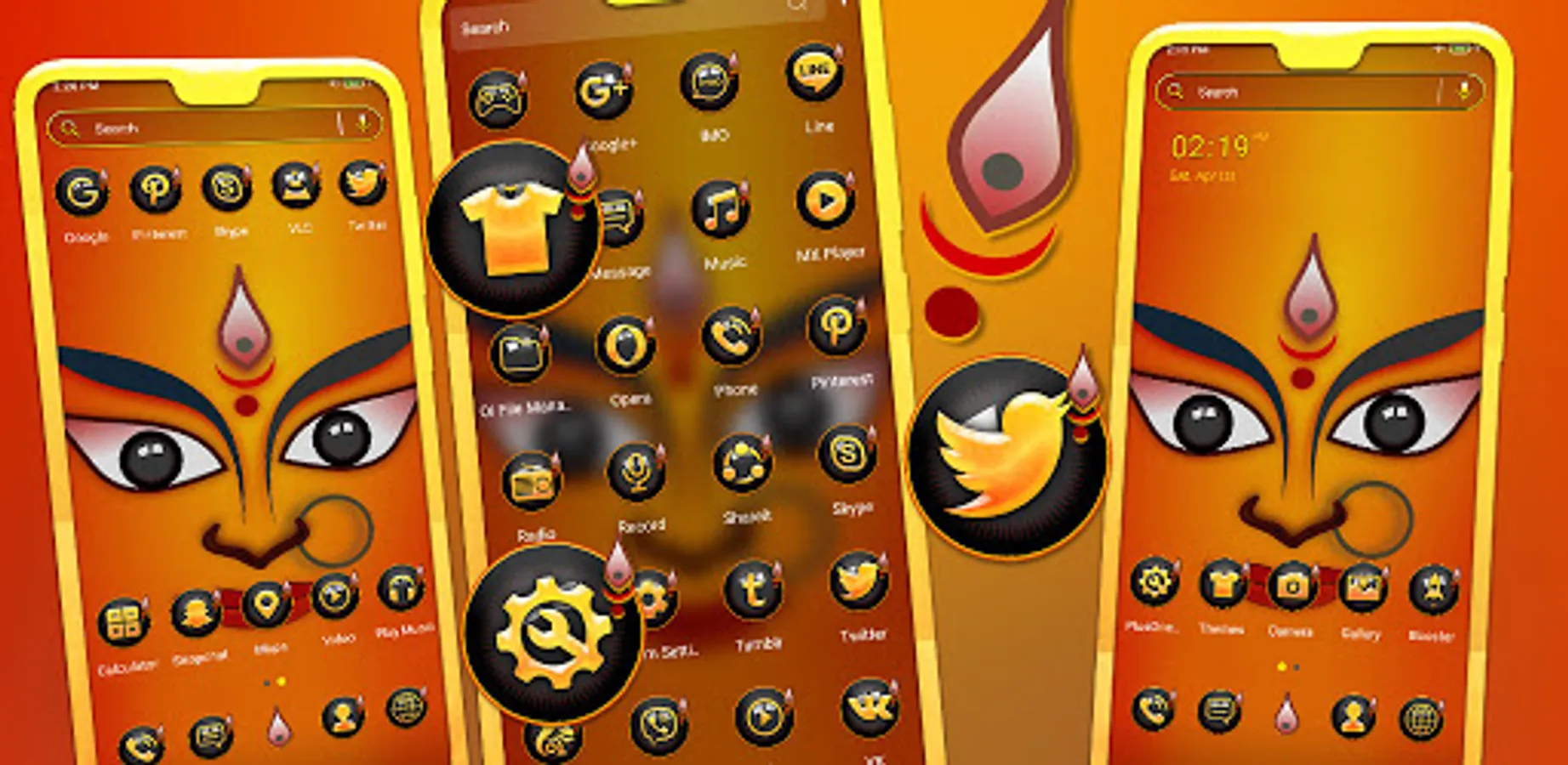 Durga Maa Launcher Theme! This awesome theme will totally transform the appearance of your screen! This Navratri theme Launcher will definitely be great for you, with its wonderful and magical colors and awesome icons! It's time to install a new theme and enjoy the latest style of Android themes! Durga Maa Theme brings advanced features to enhance your home screens, but still remains a great, user-friendly choice for everyone. We are positive that you can find your preferred Android launcher themes. Install this Durga Maa theme on your phone right now.