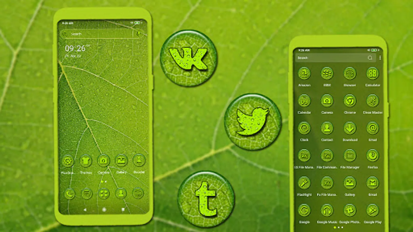 We'd like to introduce you to Green Leaf Drop Launcher Theme! This awesome theme will totally transform the appearance of your screen! This Leaf Water Drop theme Launcher will definitely be great for you, with its wonderful and magical colors and awesome icons! It's time to install a new theme and enjoy the latest style of Android themes! Green Leaf Drop Theme brings advanced features to enhance your home screen.