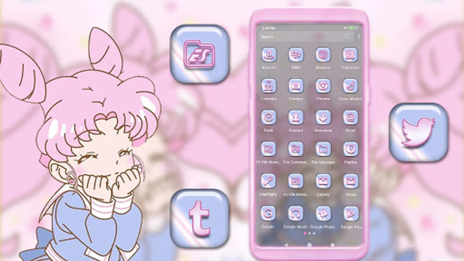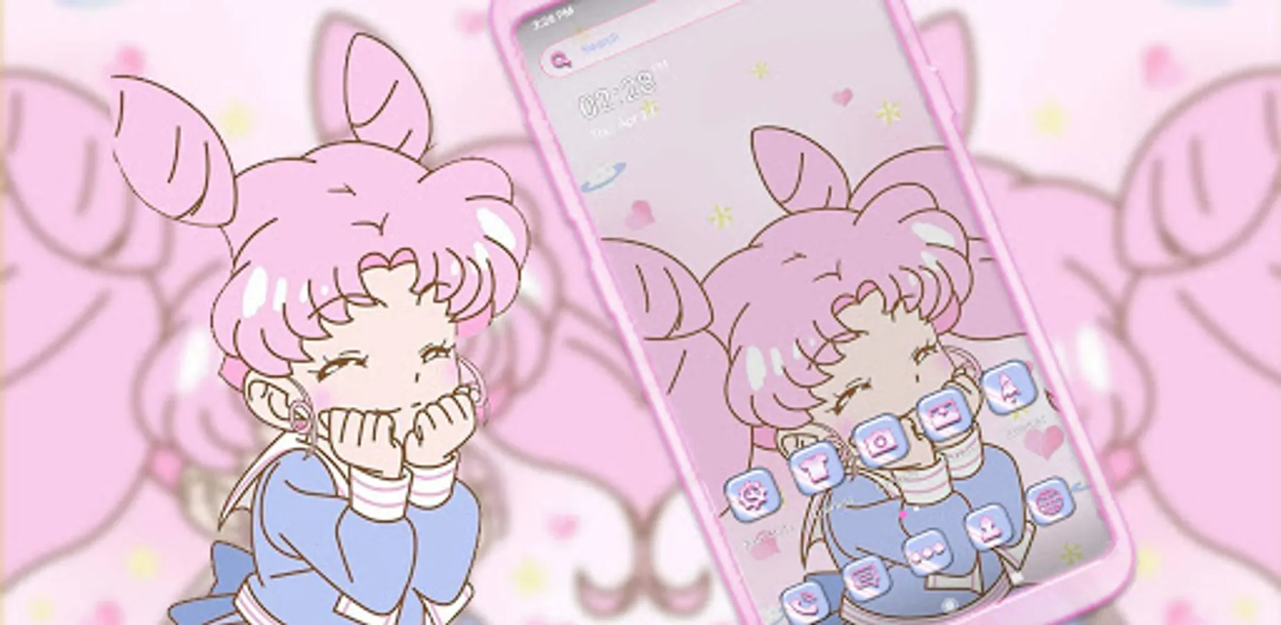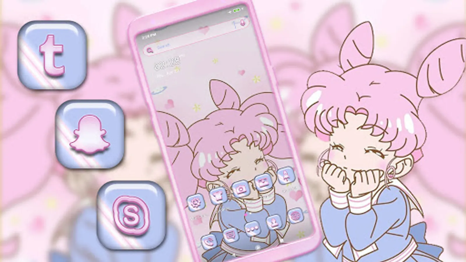 This awesome theme will totally transform the appearance of your screen! This Anime Girl theme Launcher will definitely be great for you, with its wonderful and magical colors and awesome icons! It's time to install a new theme and enjoy the latest style of Android themes! Kawaii Cute Girl Theme brings advanced features to enhance your home screens, but still remains a great, user-friendly choice for everyone. We are positive that you can find your preferred Android launcher themes. Install this Kawaii Cute Girl theme on your phone right now.