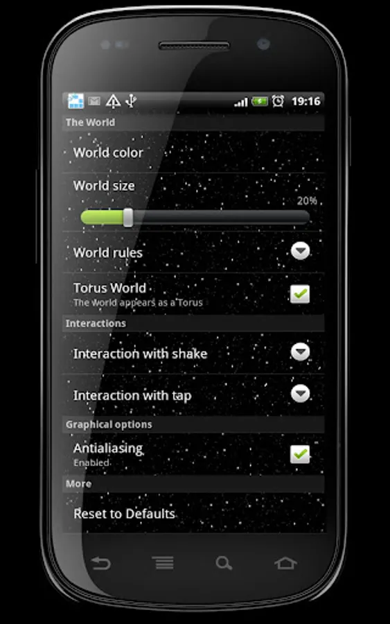 This game does not need the player itself (kind of zero-player game), but we can make it more interactive by adding special atterns that will evolve inspecific ways, or by changing the rules of the world, for instance.