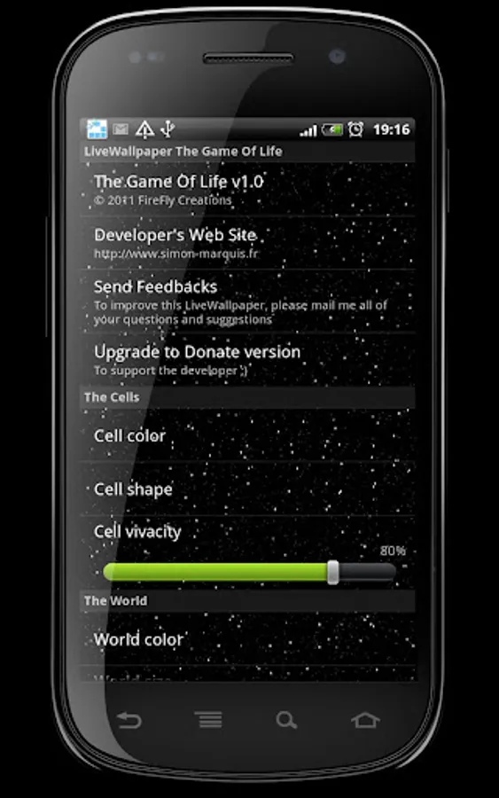 This game does not need the player itself (kind of zero-player game), but we can make it more interactive by adding special atterns that will evolve inspecific ways, or by changing the rules of the world, for instance.