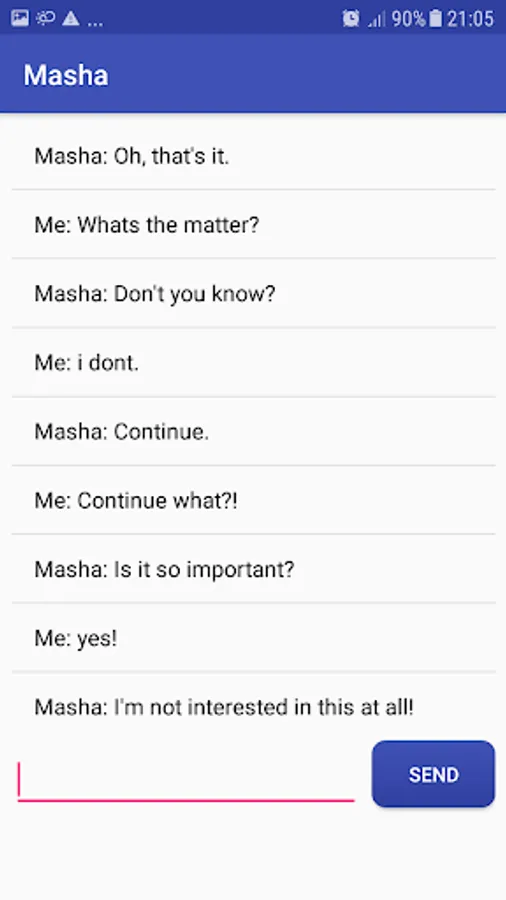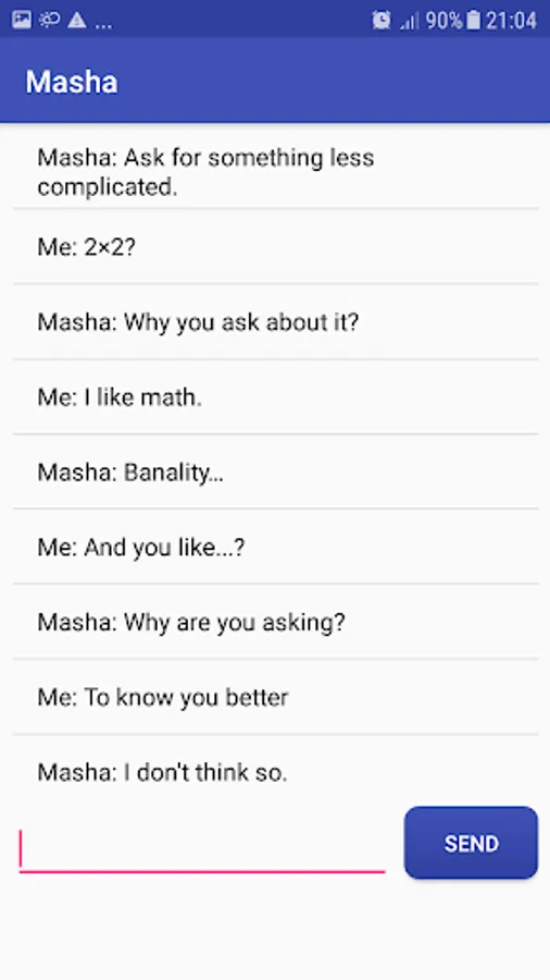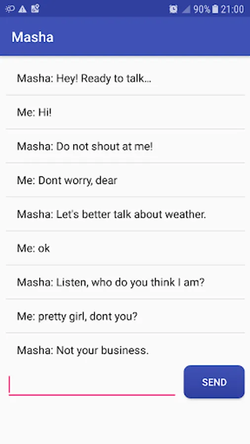 Realistic chatbot Masha is practically indistinguishable from a real girl. Masha will not let you be bored when there is no one to chat with. You can communicate with her on any topic, and she will always find an ingenious answer to any of your comments. It is impossible to come off!