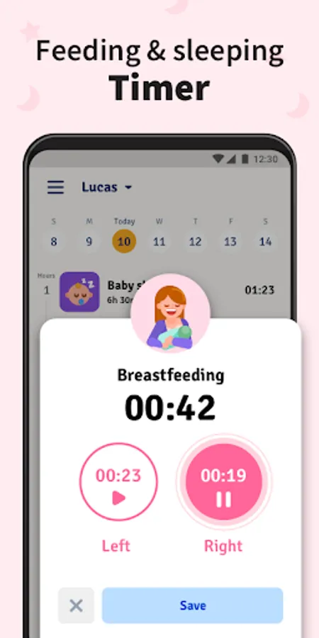 - Use breastfeeding timer to track breastfeeding time for each breast