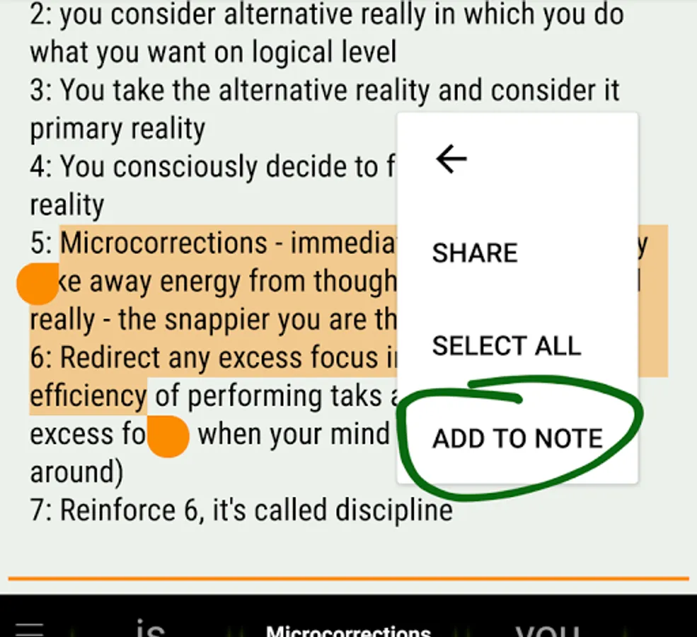 On newer devices (API > 23) app offers an option to save text selection directly into a note.