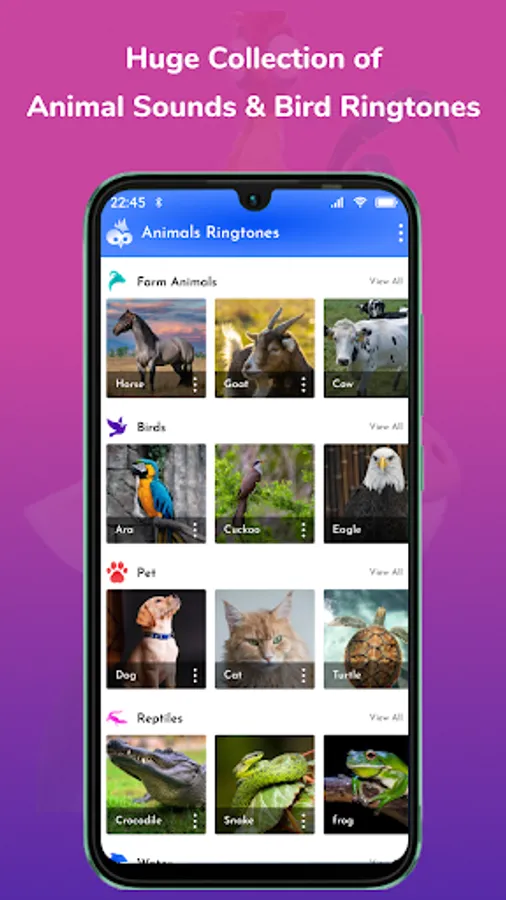 Animal sounds: ringtone maker is a fantastic app that comprises different amazing animal ringtones like cat sounds, bird sounds, wildlife sounds, and others. Choose from a variety of animal sounds and set them as a ringtone, notification tone, alarm tone, and wallpaper. The animals voice: animal ringtones app has a large collection of animal noises that you can listen to, set as a notification and alarm tone, and set as a home screen wallpaper. This animal sounds ringtones: Ringtone Maker app is an entertainment app.