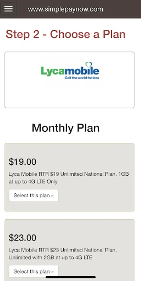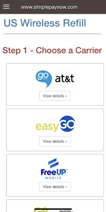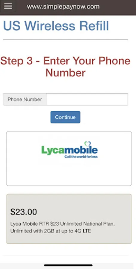 Custom Browser to Simple Pay Now website where you can refill/recharge cell phone prepaid plans. Simple, Fast and Secure online payment 24/7, 365 days