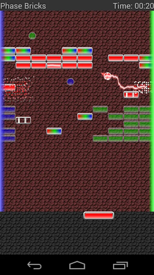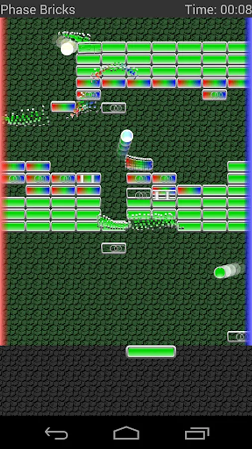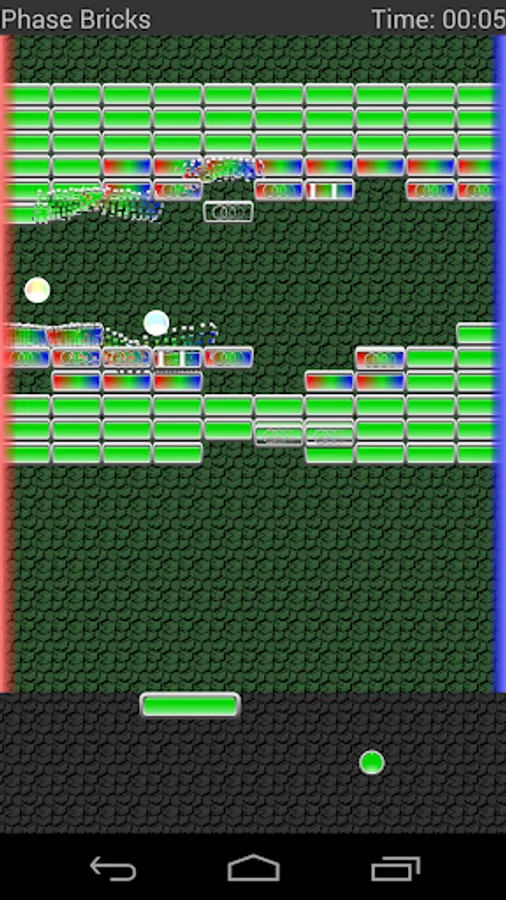 Bricks and balls can be in or out of "phase", which is controlled with a swipe gesture. If a brick is out of phase the balls pass right through it. If a ball is out of phase it passes right through the paddle. You'll want to balance the optimal phase for destroying bricks efficiently with keeping the balls in play. Don't forget that the phase can be changed while controlling the paddle if your device supports multi-touch.