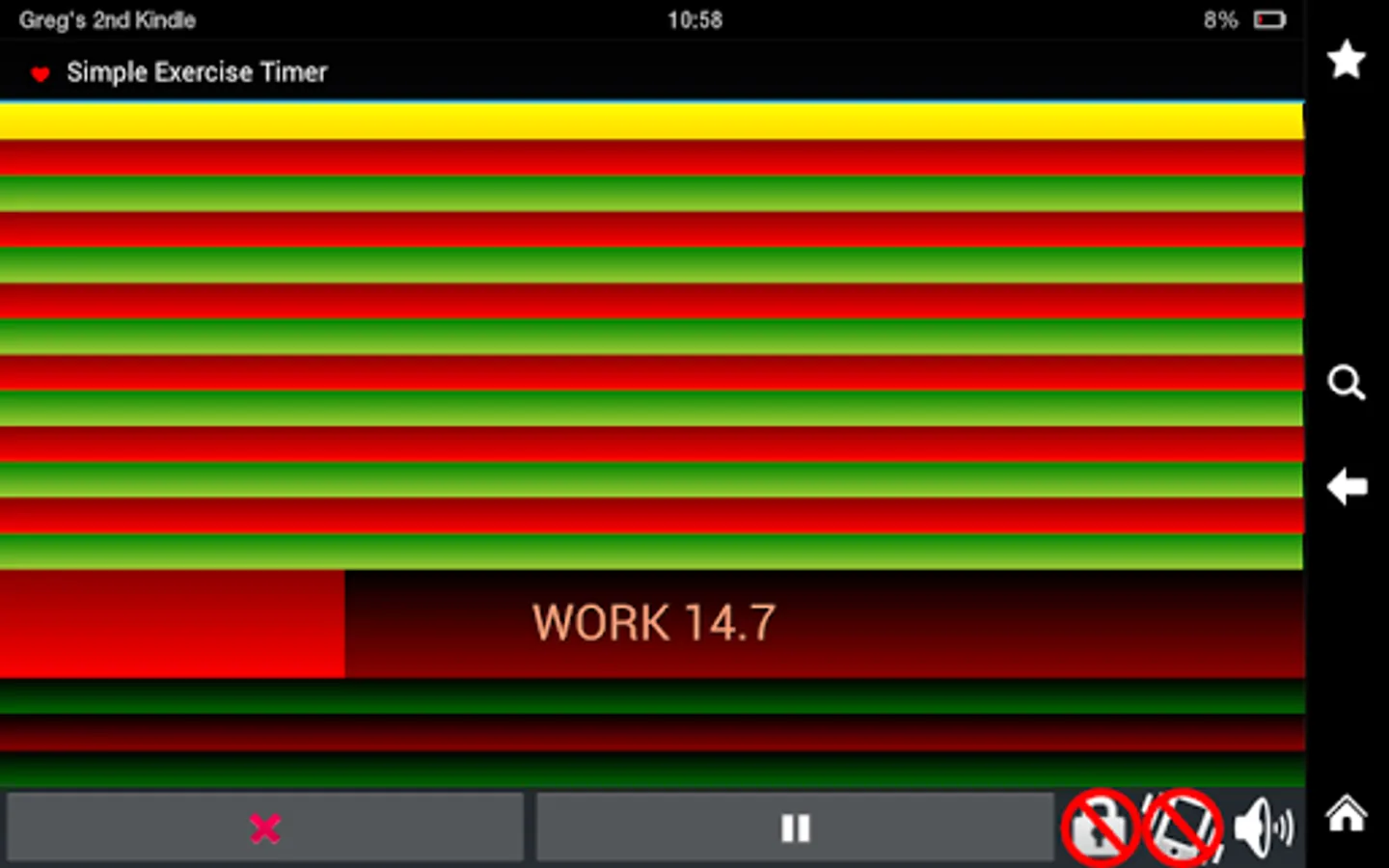Simple Exercise Timer is an intuitive, accurate, and reliable timer for working out and staying fit. Great for High-Intensity Interval Training (HIIT), Tabata, and many other forms of athletic training. The app allows for up to four different exercise states: Preparation, Work, Rest, and Cooldown.