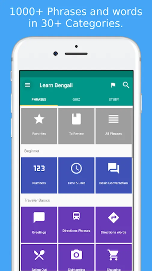 * Advanced Conversation * Health * Border Crossing * Questions * Places * Food * Vegetables * Fruits * Colors * Romance I * Romance II * Post Office * Phone & Internet * Banking * Occupations * Business Talk * Hobbies * Feelings * Body * Animals * Family * Countries★★★ Feedback appreciated ★★★If you like this app, please take a few seconds to give a rating or review. If you have any feedback, suggestions or advise I am more than happy if you let me know.★★★About US★★★ Website: www.simplylearnlanguages.com/bengali