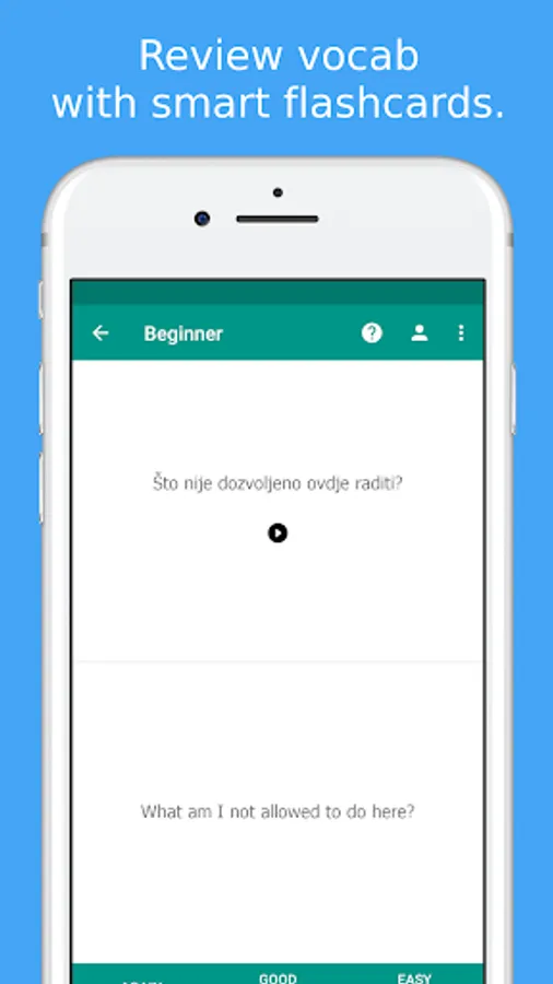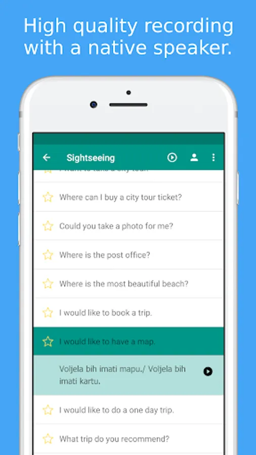 ★★★ Learn Croatian language when visiting Croatia ★★★Simply Learn Croatian Language App is a FREE language app that will assist you to speak Croatian quickly and effectively.All Croatian phrases and words are presented to you in both phonetic and original Croatian writing. They are recorded by a native speaker from Croatia.Save your favorite phrases and words to review them without fuss.Study your vocabulary with flashcards using the spaced repetition technique.Test your knowledge with fun Croatian language quiz and review your score.★★★ Survive when travelling in Croatia ★★★ Use the Croatian phrasebook to survive in Croatia. All important survival phrases are included.For example, let the app speak to the Taxi driver in Croatia to show them where you want to go.Search all phrases and words to quickly access what you need.★★★ Main Features ★★★✓ 300+ free Croatian phrases and words