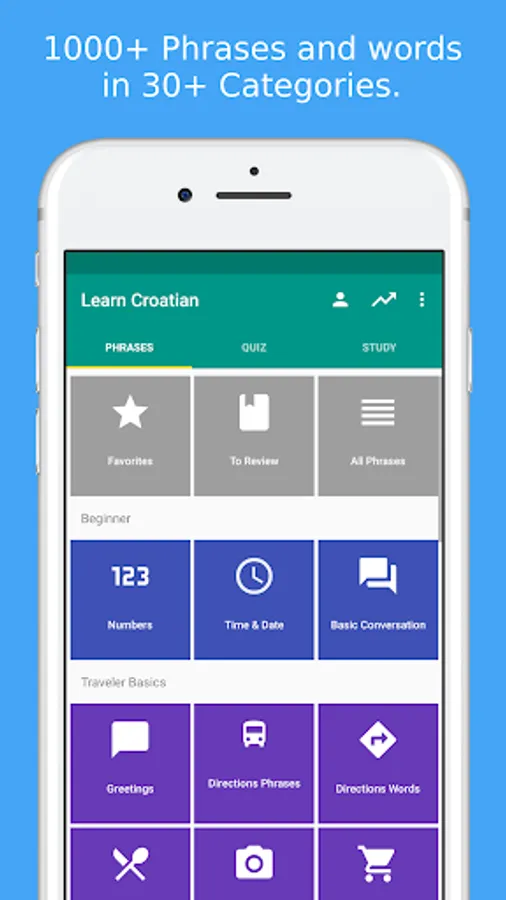 * Advanced Conversation * Health * Border Crossing * Questions * Places * Food * Vegetables * Fruits * Colors * Romance I * Romance II * Post Office * Phone & Internet * Banking * Occupations * Business Talk * Hobbies * Feelings * Body * Animals * Family * Countries★★★ Feedback appreciated ★★★If you like this app, please take a few seconds to give a rating or review. If you have any feedback, suggestions or advise I am more than happy if you let me know.★★★About US★★★ Website: www.simplylearnlanguages.com/croatian
