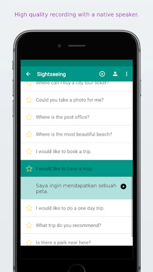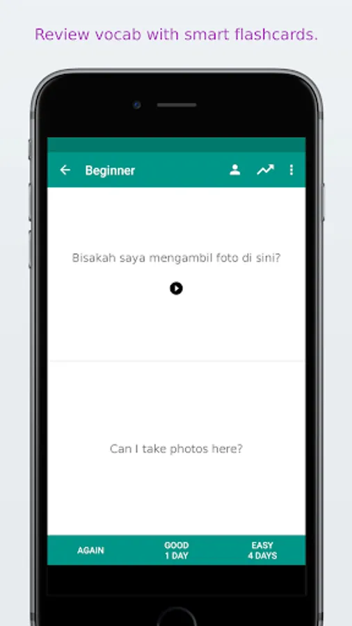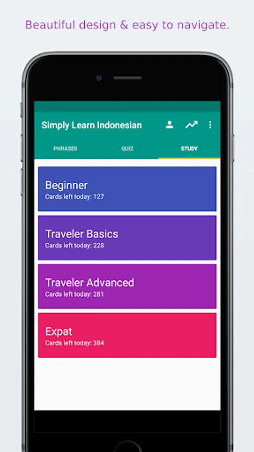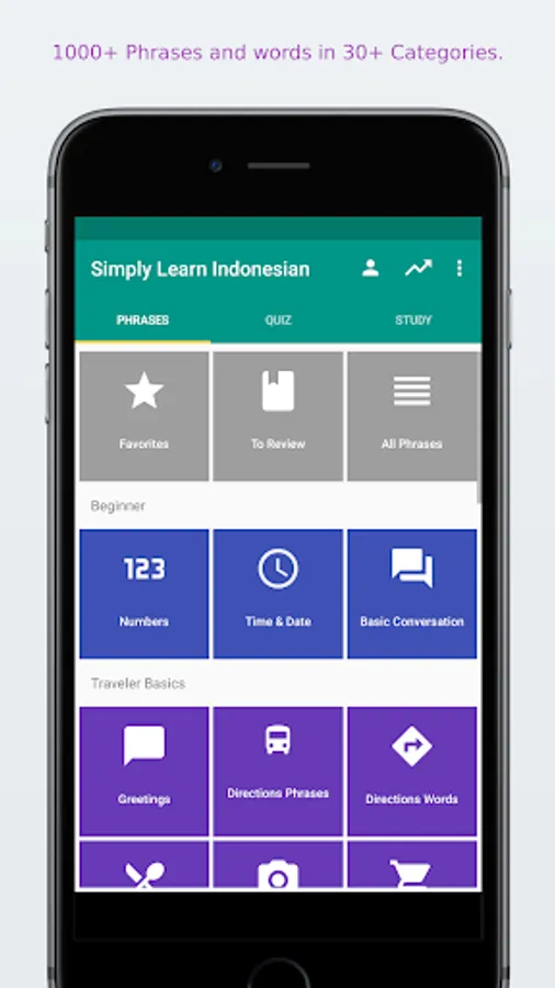 ★★★ Learn Indonesian language when visiting Indonesia ★★★Simply Learn Indonesian Language App is a FREE language app that will assist you to speak Indonesian quickly and effectively.All Indonesian phrases and words are presented to you in both phonetic and original Indonesian writing. They are recorded by a native speaker from Indonesia.Save your favorite phrases and words to review them without fuss.Study your vocabulary with flashcards using the spaced repetition technique.Test your knowledge with fun Indonesian language quiz and review your score.★★★ Survive when travelling in Indonesia ★★★ Use the Indonesian phrasebook to survive in Indonesia. All important survival phrases are included.For example, let the app speak to the Taxi driver in Indonesia to show them where you want to go.Search all phrases and words to quickly access what you need.★★★ Main Features ★★★✓ 300+ free Indonesian phrases and words