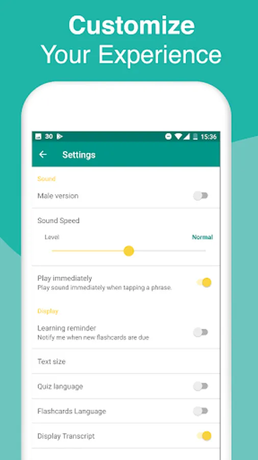 ✓ Adjust the quiz and flashcards settings for Khmer (Cambodian) to English, English to Khmer (Cambodian)