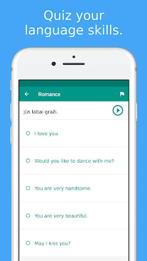 ★★★ Learn lithuanian language when visiting Lithuania ★★★Simply Learn lithuanian Language App is a FREE language app that will assist you to speak lithuanian quickly and effectively.All lithuanian phrases and words are presented to you in both phonetic and original lithuanian writing. They are recorded by a native speaker from Lithuania.Save your favorite phrases and words to review them without fuss.Study your vocabulary with flashcards using the spaced repetition technique.Test your knowledge with fun lithuanian language quiz and review your score.★★★ Survive when travelling in Lithuania ★★★ Use the lithuanian phrasebook to survive in Lithuania. All important survival phrases are included.For example, let the app speak to the Taxi driver in Lithuania to show them where you want to go.Search all phrases and words to quickly access what you need.★★★ Main Features ★★★✓ 300+ free lithuanian phrases and words