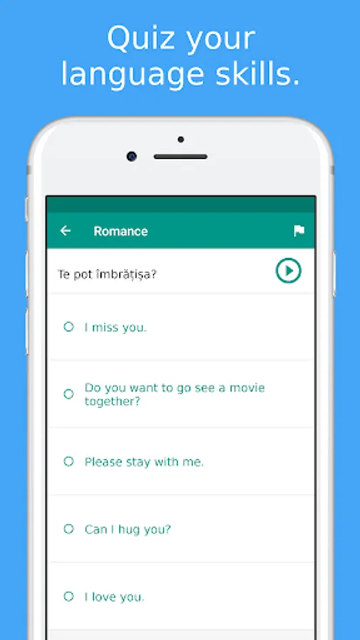 ★★★ Learn Romanian language when visiting Romania ★★★Simply Learn Romanian Language App is a FREE language app that will assist you to speak Romanian quickly and effectively.All Romanian phrases and words are presented to you in both phonetic and original Romanian writing. They are recorded by a native speaker from Romania.Save your favorite phrases and words to review them without fuss.Study your vocabulary with flashcards using the spaced repetition technique.Test your knowledge with fun Romanian language quiz and review your score.★★★ Survive when travelling in Romania ★★★ Use the Romanian phrasebook to survive in Romania. All important survival phrases are included.For example, let the app speak to the Taxi driver in Romania to show them where you want to go.Search all phrases and words to quickly access what you need.★★★ Main Features ★★★✓ 300+ free Romanian phrases and words