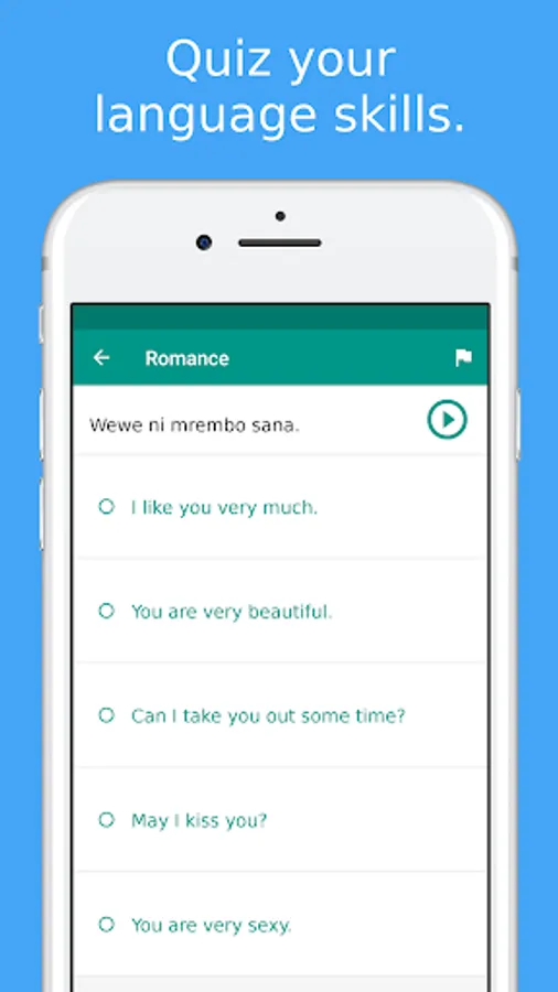 ★★★ Learn Swahili language when visiting Kenya ★★★Simply Learn Swahili Language App is a FREE language app that will assist you to speak Swahili quickly and effectively.All Swahili phrases and words are presented to you in both phonetic and original Swahili writing. They are recorded by a native speaker from Kenya.Save your favorite phrases and words to review them without fuss.Study your vocabulary with flashcards using the spaced repetition technique.Test your knowledge with fun Swahili language quiz and review your score.★★★ Survive when travelling in Kenya ★★★ Use the Swahili phrasebook to survive in Kenya. All important survival phrases are included.For example, let the app speak to the Taxi driver in Kenya to show them where you want to go.Search all phrases and words to quickly access what you need.★★★ Main Features ★★★✓ 300+ free Swahili phrases and words